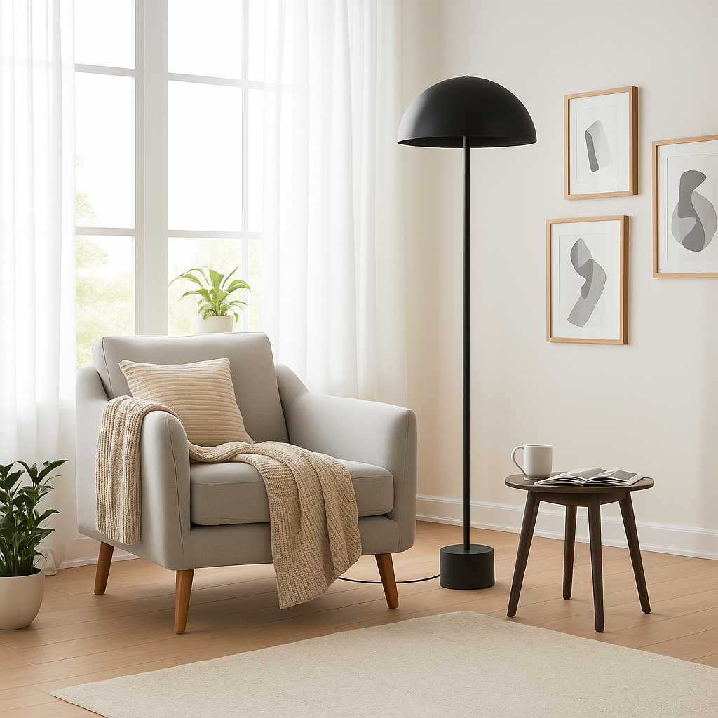 Die Murdoch Stehlampe kombiniert ein schlankes Design mit hochwertigen Materialien. Ein schmaler, gebogener Metallstiel in gebürstetem Messing erhebt sich aus einem zylindrischen Sockel aus weißem Marmor und führt zu einem halbrunden Lampenschirm im passenden Finish. Das Licht wird gezielt nach unten gelenkt und schafft eine angenehme, fokussierte Beleuchtung.